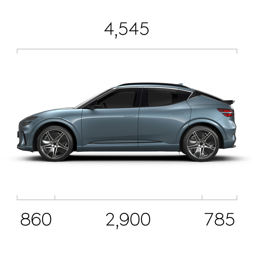 The GV60 features a 4th-generation 84.0 kWh high-voltage battery, offering an impressive range of up to 481 km on a single charge. With a 350 kW fast charger, it can go from 10% to 80% in just 18 minutes, giving you over 300 km of driving.1,2,3